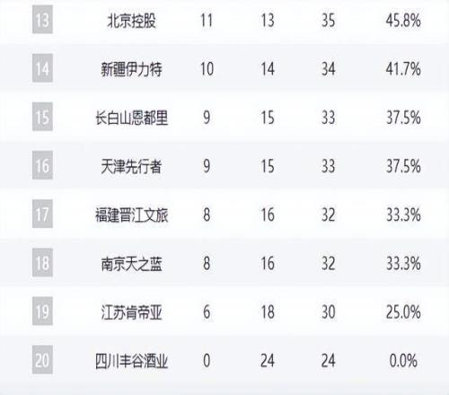 吉林連敗不止,狀態(tài)持續(xù)下滑;天津兩連勝,悄然復(fù)蘇;福建、江蘇深陷泥潭,連敗不止;同曦敗給廣廈,徹底失去爭(zhēng)八希望。