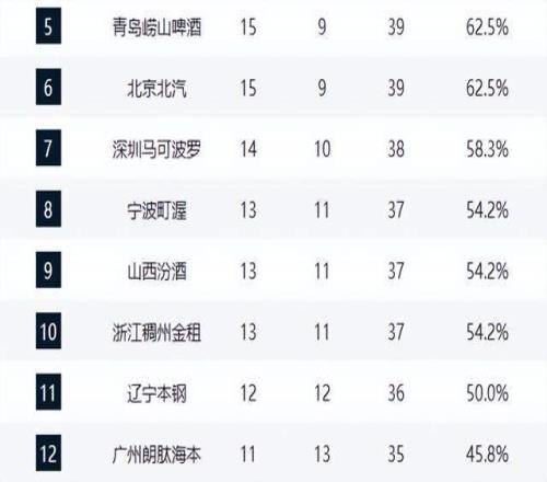 上海反超廣廈升至第1,廣東3連敗第3,山東守住前4,遼寧跌出前10
