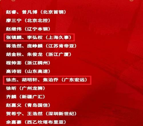 上海球員張鎮(zhèn)麟與李弘權(quán),廣東球員胡明軒、徐杰與焦泊喬,他們?nèi)脒x中國男籃集訓(xùn)隊(duì)缺席,老將劉錚也因?yàn)閭鋺?zhàn)世預(yù)賽缺席。
