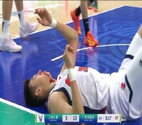 王少杰被打中面部,鼻子流血下場治療。