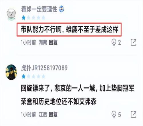 賽后,某籃球論壇球迷忍不住紛紛吐槽:“帶隊能力不行啊,雄鹿不至于差成這樣”、“什么時候退役”、“沒有那一腳,現(xiàn)在也就是個大號恩比德”......