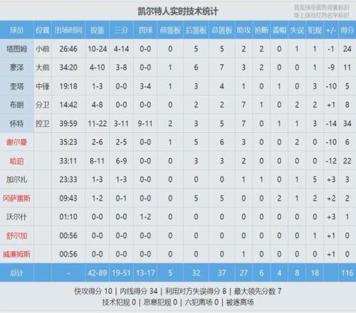 這是塔圖姆復(fù)出之后的第三場比賽,此役塔圖姆出戰(zhàn)27分鐘,投籃24中10,三分球14中4,得到24分5籃板2助攻2搶斷1失誤1犯規(guī),末節(jié)獨(dú)得10分依然無力回天。懷特22投11中,砍下賽季新高的34分,外加5籃板7助攻1蓋帽。