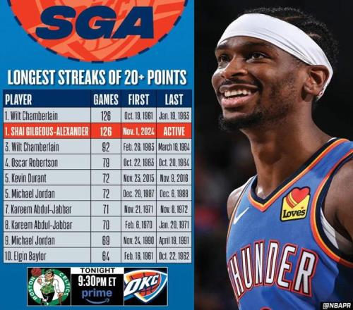 這記中投可不簡單,幫助亞歷山大超越張伯倫(連續(xù)126場20+),達成了連續(xù)127場20+成就,NBA官方及各大媒體也第一時間曬圖慶祝。