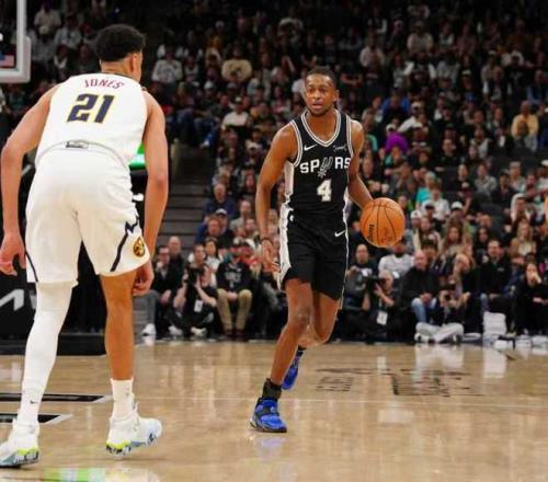 馬刺過去5場收獲5連勝,掘金上一場主場129-93大勝火箭,本賽季首次交鋒馬刺客場139-136險(xiǎn)勝掘金。本場掘金缺少沃特森與戈登,馬刺缺少加西亞與文班亞馬。首節(jié)開局馬刺7-2領(lǐng)先,布勞恩與??怂箤ヒ挥浫?,馬刺內(nèi)外開花擴(kuò)大13-7領(lǐng)先。掘金連得5分縮小差距,馬刺一波6-0攻勢擴(kuò)大19-12領(lǐng)先,約基奇率隊(duì)連追6分,雙方之后纏斗至馬刺23-22領(lǐng)先。馬刺一波14-3攻勢拉開比分,首節(jié)結(jié)束馬刺37-25領(lǐng)先掘金。首節(jié)掘金僅24中7,其中三分14中1低迷,約基奇10中4得到12+4+0助攻;馬刺24中12,其中三分12中5,瓦塞爾9分與??怂?分5助攻。