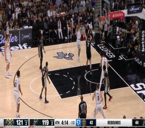 這還不是最高潮,第四節(jié)剩下5分鐘前,掘金依然以118-119落后1分,隨后的不到2分鐘里,穆雷一人打了馬刺一波7-0: