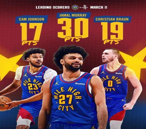 本場的掘金是背靠背作戰(zhàn),上一場他們在主場129-93戰(zhàn)勝火箭,當(dāng)時穆雷交出的表現(xiàn):全場出戰(zhàn)31分鐘,投籃21中11,三分4中3,罰球6中5,得到30分2籃板4助攻,正負值+25。
