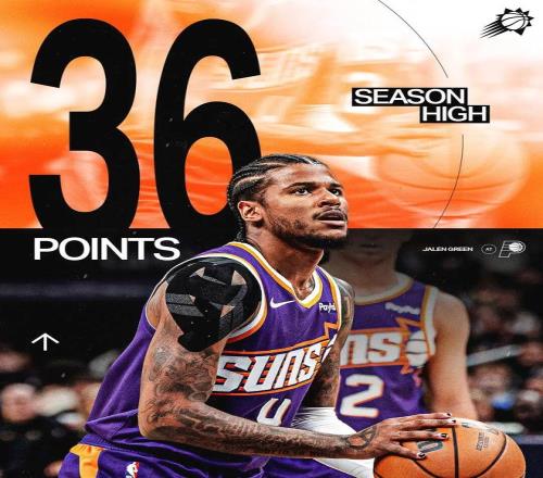 全場出戰(zhàn)34分鐘,投籃23中14,三分9中3,罰球7中5,得到36分3籃板4助攻4搶斷,36分刷新太陽生涯最高,同時正負值達到了+16。