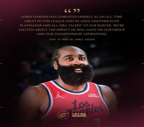 哈登加蘭交易官宣!騎士總裁盛贊助推爭(zhēng)冠快船官方感謝登哥付出