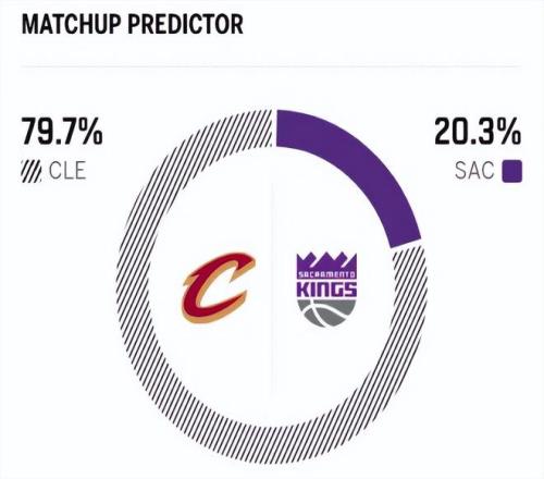 賽前,美媒ESPN對本場比賽進行了預(yù)測,騎士勝率高達79.7%,國王勝率僅有20.3% ,差距非常明顯。