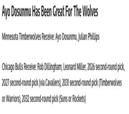 公牛得到:迪林厄姆+倫納德-米勒+4個(gè)次輪簽。