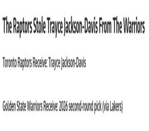 這是一筆典型的低價(jià)撿漏型交易,猛龍隊(duì)僅花費(fèi)一枚次輪簽就從勇士拿下TJD這名合格的替補(bǔ)內(nèi)線。