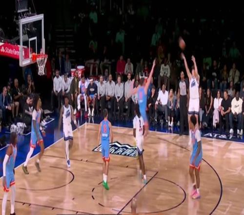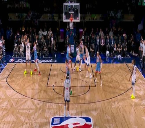 不過楊瀚森并沒有讓大家等太久,比分9-14的時候,楊瀚森被替換上場。這比賽是打分?jǐn)?shù)的,不計時間,誰先到40分誰贏。在楊瀚森上場前,克林根大殺四方,在14分里拿到9分。