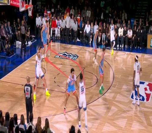 楊瀚森第四個球,則是展現(xiàn)小里弗斯(楊瀚森所在隊伍的主教練)的戰(zhàn)術(shù)水準(zhǔn),尼德豪澤低位要球,后衛(wèi)傳給尼德豪澤之后迅速去底線給楊瀚森做一個掩護(hù)死死擋住克林根,楊瀚森擺脫之后接到尼德豪澤的傳球,利用身高差打進(jìn)勾手。