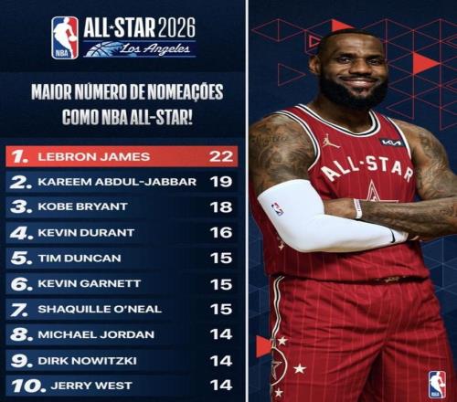 喬丹、諾維茨基、韋斯特都是14次,看上去和前面差一截,但并不代表他們的歷史地位更低,只是這份榜單統(tǒng)計的是“入選次數(shù)”而不是“單季高度”。尤其像喬丹這種生涯中有過階段性離開賽場的情況,次數(shù)自然會被壓住;韋斯特那代的賽季長度、球隊數(shù)量、全明星生態(tài)也和后來的時代不同。把這些因素放回去看,14次依然是極其夸張的長期統(tǒng)治證明。