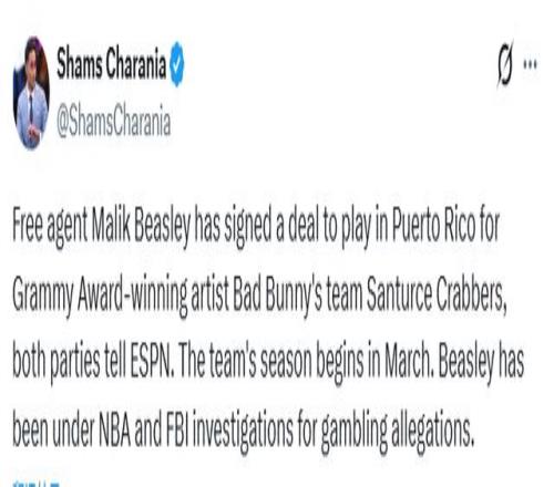 北京時(shí)間2月14日,據(jù)名記Shams報(bào)道,自由球員馬利克-比斯利已簽約加盟由格萊美獲獎(jiǎng)歌手壞痞兔(Bad Bunny)擁有的波...