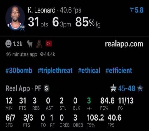 他獨得31分,而且效率超高,統(tǒng)治力爆表