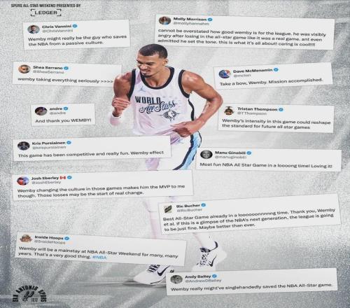 NBA專欄作者Jared Weiss寫道:“文班亞馬曾誓言,要讓全明星正賽重回昔日榮光。今年,他向籃球世界兌現(xiàn)了自己的承諾。這場比賽的表現(xiàn),進一步鞏固了文班亞馬作為NBA下一位門面的地位?!蔽陌啻蛄藘晒?jié),13投10中砍下33分8籃板3蓋帽。