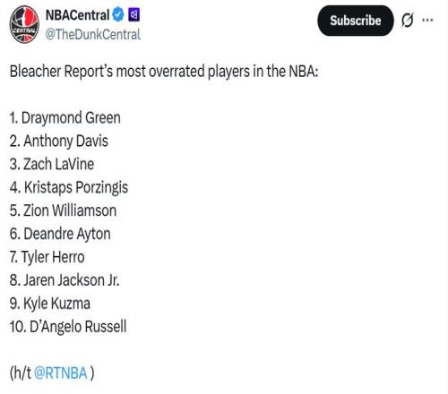 美媒評(píng)現(xiàn)役最被高估球員TOP10!前五勇士獨(dú)占兩席濃眉哥高居第二