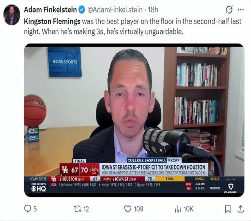 北京時間2月17日,休斯頓大學67-70惜敗愛荷華州立大學,這場比賽弗萊明斯37分鐘,15中9,三分6中4,拿到22分5籃板4助...