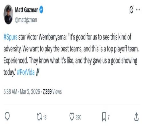 11連勝終結(jié),文班空砍25+13+4帽!4點(diǎn)證明馬刺這場(chǎng)硬碰硬輸?shù)貌辉?/span>