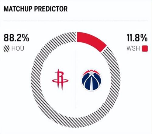 賽前,美媒ESPN對本場比賽進行了勝率預測,火箭隊勝率高達88.2% ,奇才勝率則僅有可憐的11.8% ,差距非常明顯。