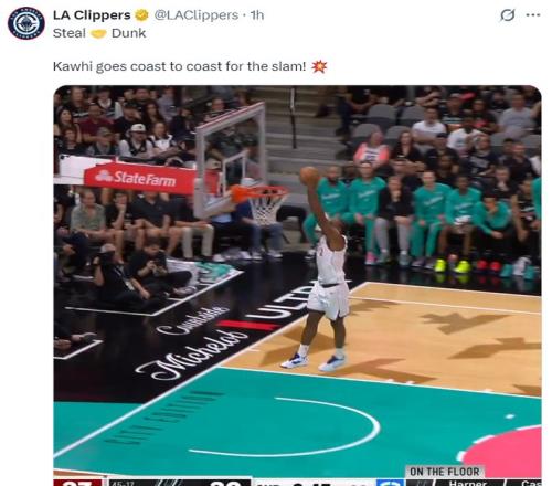 第二節(jié)帶第二陣容的倫納德開始進(jìn)入了進(jìn)攻模式,他單節(jié)5中3拿到7分3籃板1助攻1搶斷,他的搶斷一條龍暴扣也非常精彩,快船也一度領(lǐng)先馬刺達(dá)到25分之多,上半場(chǎng)快船攻防都順風(fēng)順?biāo)?/p>