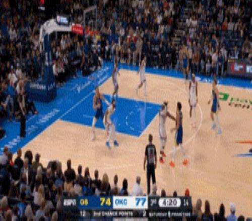 亞歷山大沉著的看著追夢,壓著節(jié)奏然后用非常簡單的側(cè)撤步出手三分球球進(jìn)主場歡呼,鴨梨又一次殺死比賽 雷霆以1...