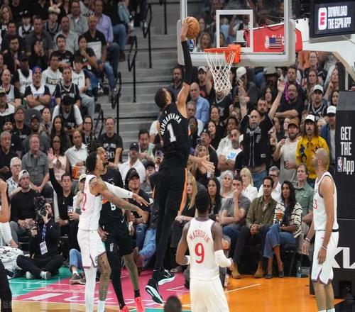 下半場文班的防守實(shí)在太恐怖了,末節(jié)最后2分半他回來打,一個三分一個反擊扣籃幫助馬刺反超。
