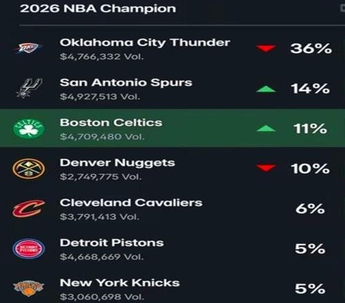 NBA最新奪冠概率更新!火勇湖三大熱門(mén)皆落選,馬刺成超級(jí)黑馬近16戰(zhàn)15勝高居第二,榜首36%斷層領(lǐng)跑。火湖勇三隊(duì)落...