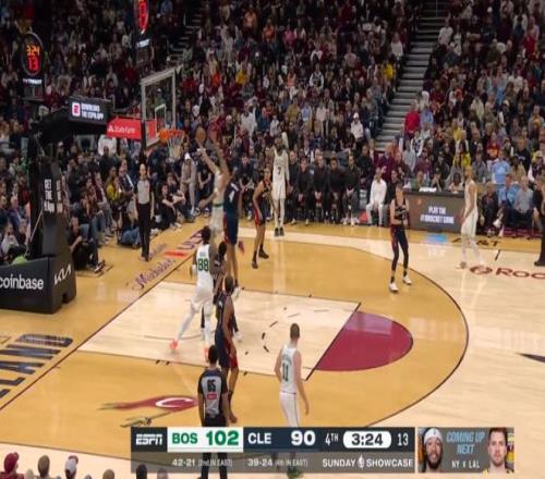 雖說半場就領(lǐng)先了20分,但騎士畢竟是騎士,在米切爾+哈登+莫布利帶領(lǐng)下,第四節(jié)一度將分差縮小到個位數(shù),然后還是塔圖姆,連拿5分鎖定勝局: