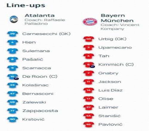 拜仁客戰(zhàn)亞特蘭大:凱恩替補,雅克松、格納布里、基米希首發(fā)