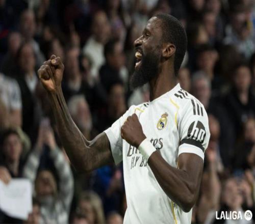 第39分鐘,皇馬獲得任意球,維尼修斯一撥,巴爾韋德標志性起腳怒射,門將將球撲出,皮球來到呂迪格身前,德國后衛(wèi)不停球撩射,打破僵局。
