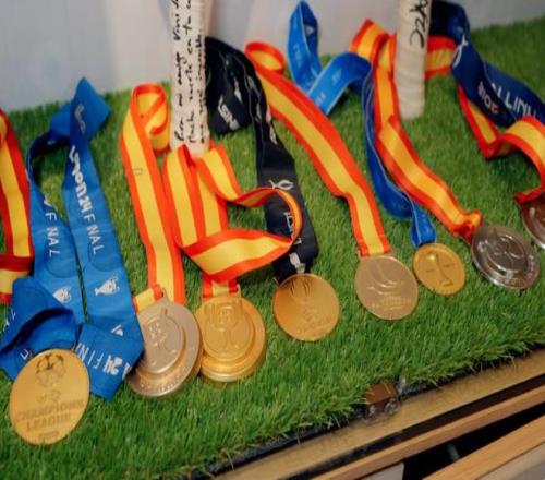 這里有歐冠的、歐洲超級杯的,還有國王杯的。連我們輸?shù)舻臎Q賽獎牌我也都留著,我全部都保存著。