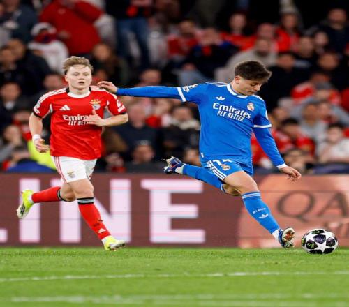 為了能夠一雪前恥,掌握住晉級歐冠十六強(qiáng)的主動權(quán),皇馬在客場也是毫無保留,在442的陣型中,讓庫爾圖瓦鎮(zhèn)守龍門,阿諾德、呂迪格、赫伊森和卡雷拉斯構(gòu)筑后防,巴爾韋德、居萊爾、瓊阿梅尼和卡馬文加坐鎮(zhèn)中場,雙箭頭則是姆巴佩搭檔維尼修斯。