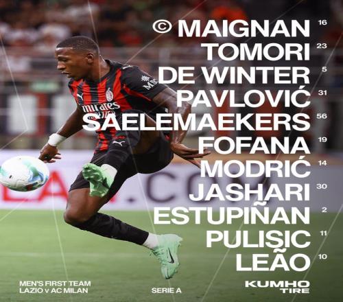 米蘭首發(fā):16-邁尼昂、23-托莫里、5-德溫特、31-帕夫洛維奇、56-薩勒馬克爾斯、19-優(yōu)素福-福法納、14-莫德里奇、30-亞沙里、2-埃斯圖皮尼安、11-普利希奇、10-萊奧