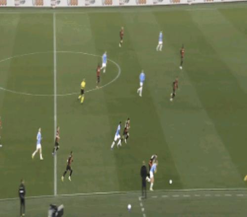 ↑而在這次進(jìn)攻前,米蘭的反擊中,美隊(duì)持球,沒(méi)有給啟動(dòng)的萊奧傳直塞。
