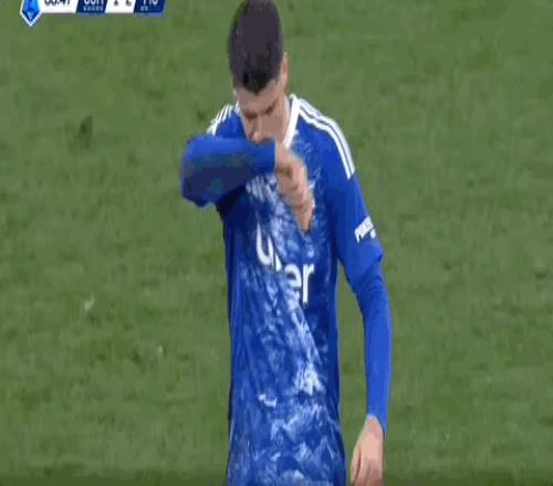 第89分鐘,莫拉塔兩黃變一紅被罰下,在場邊又與教練發(fā)生口角