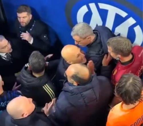 這段視頻其實拍攝于上半場結束時,起因是卡盧盧被裁判出示了第二張黃牌從而被罰下,這一爭議判罰直接導致了“三巨頭”在球員通道內的爆發(fā)。根據(jù)媒體的透露,當時斯帕萊蒂喊的是:“比賽被毀掉了,比賽被毀掉了?!倍釀t反復強調:“紅牌不存在!紅牌不存在!”