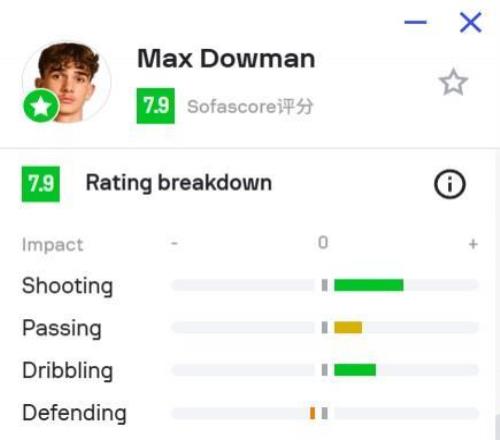 在此之前足總杯對曼斯菲爾德,道曼就給出了很好的數(shù)據(jù)。比賽半小時計道曼的射門次數(shù)(4次)、奪回球權(quán)次數(shù)(6次)以及在對方禁區(qū)內(nèi)觸球次數(shù)(6次)均是比賽第一多。賽后也被專業(yè)人士夸贊