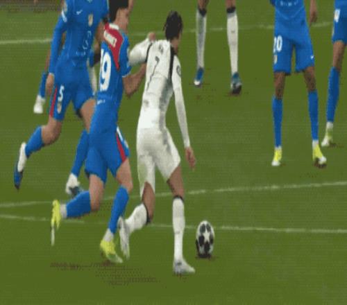 上半場補時階段,費爾明傳中,特里皮爾在拉菲尼亞的身后,不得不拉拽犯規(guī)。VAR介入,裁判認定特里皮爾犯規(guī),判罰點球。