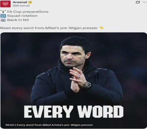 阿爾特塔出席了賽后新聞發(fā)布會(huì),我們來(lái)看主要內(nèi)容。