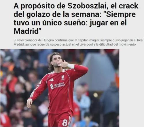 匈牙利主帥羅西近日表示,索博斯洛伊的夢(mèng)想是為皇馬效力,而馬卡報(bào)表示這個(gè)言論已經(jīng)引起了銀河戰(zhàn)艦的關(guān)注。