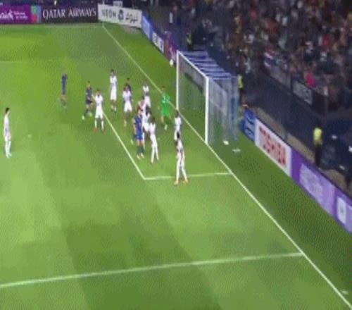 第73分鐘,高天意開出左側角球,吳曦前點頭球后蹭擊中橫梁。