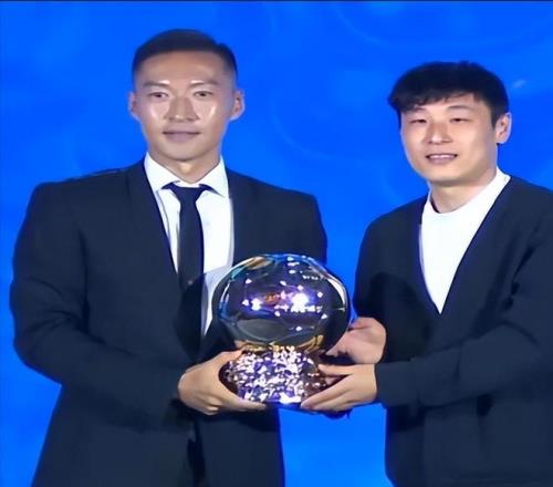 這是他繼2020年之后,職業(yè)生涯第二次捧起中國(guó)金球獎(jiǎng),頒獎(jiǎng)臺(tái)上,為他頒獎(jiǎng)的,是多年的國(guó)家隊(duì)?wèi)?zhàn)友武磊。