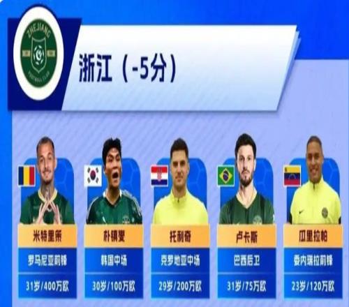 浙江隊同樣實力不容小覷。他們引進(jìn)了包括韓國國腳樸鎮(zhèn)燮、克羅地亞中場托利奇、委內(nèi)瑞拉前鋒瓜里拉帕在內(nèi)的多名強援。托利奇曾踢過歐冠和歐聯(lián)杯,攻破過拜仁的大門,他與已經(jīng)成為攻擊線上大腿的米特里策、王鈺棟的配合值得期待。